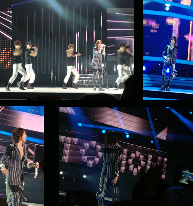 说起来amigo不是他跟kame两人的歌么为毛要这里一个人唱?其实不是很明白,不过作为一个不关注他很久还是听到2首超熟悉的歌于是超感动ヾ(。◕ฺ∀◕ฺ)ノ♫♬ 现场气氛超HIGH的,P绝对是裸穿着西装,不时看到胸肌+肚脐///看台一群yamap本命孩子穿同样衣服一直在说着日文,翻译成:请带我走吧<<咦?但是问了几个朋友都是觉得这个意思╭(╯^╰)╮    一遍之后导播要求again,于是再次赚到了XD AMIGO again~☆,